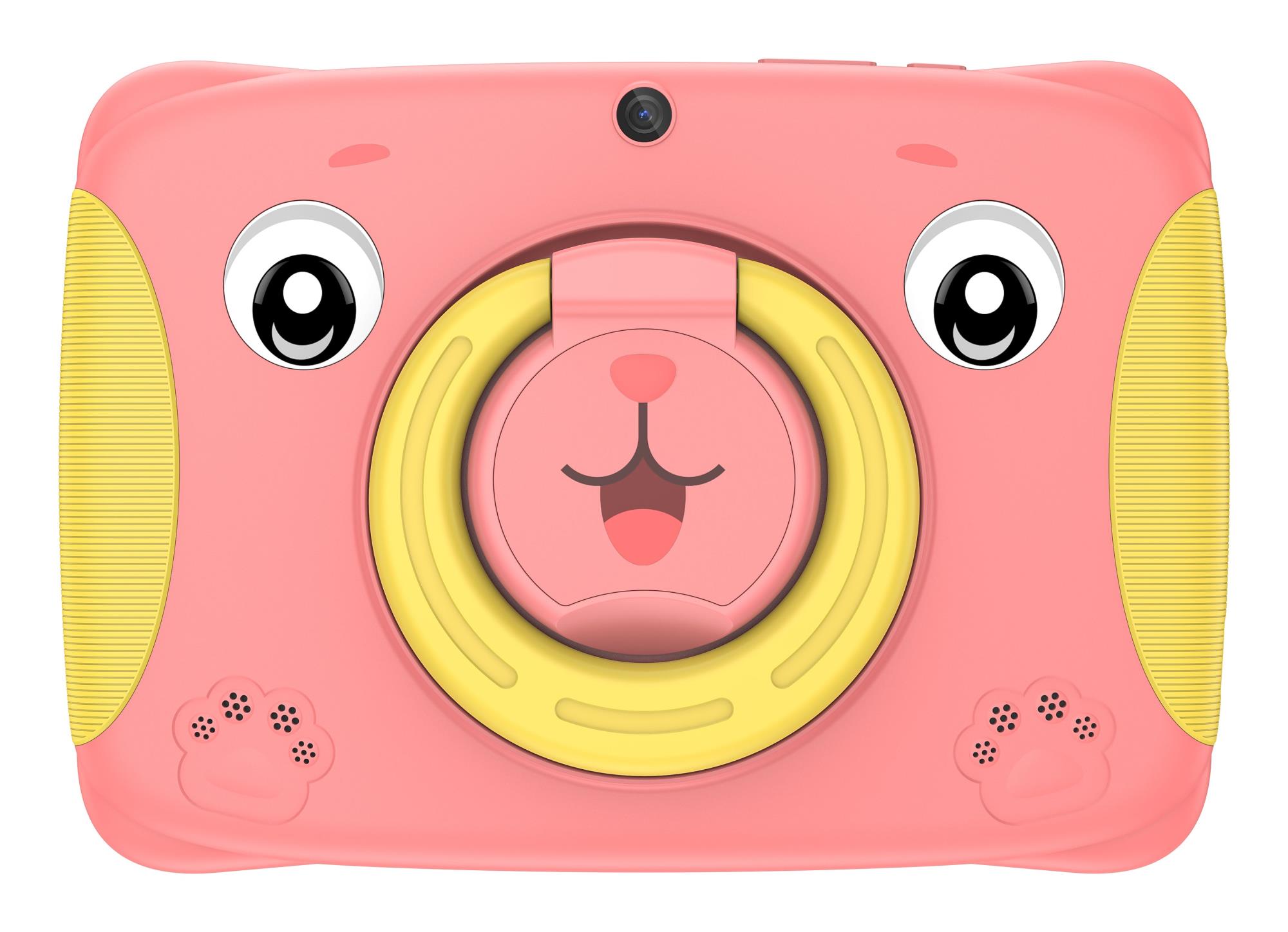 Детский планшет с диагональю 7 дюймов, процессором Unisoc SC7731E, 2 ГБ ОЗУ, 32 ГБ памяти, разрешением 1024×600, основной камерой 2 МП и фронтальной камерой 0,3 МП, операционной системой Android, розового цвета и зарядкой на 10 Вт.