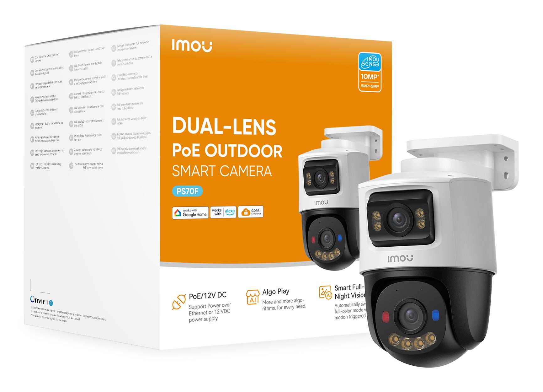 | Kopsavilkums | Imou PS70F. Tips: IP drošības kamera, Atbalstītā novietošana: Ārpus telpām, Savienojamības tehnoloģija: Vadu. Montāžas veids: Griestu, Produkta krāsa: Balta, Formas faktors: Sfēriska. Objektīva skata leņķis, horizontālais: 76°, Objektīva skata leņķis, vertikālais: 41°, Objektīva skata leņķis, diagonālais: 91°. Sensora tips: CMOS, Optiskā sensora izmērs: 25.4 / 3 mm (1 / 3″). Digitālā tālummaiņa: 8x, Fiksēts fokusa attālums: 3.6 mm |